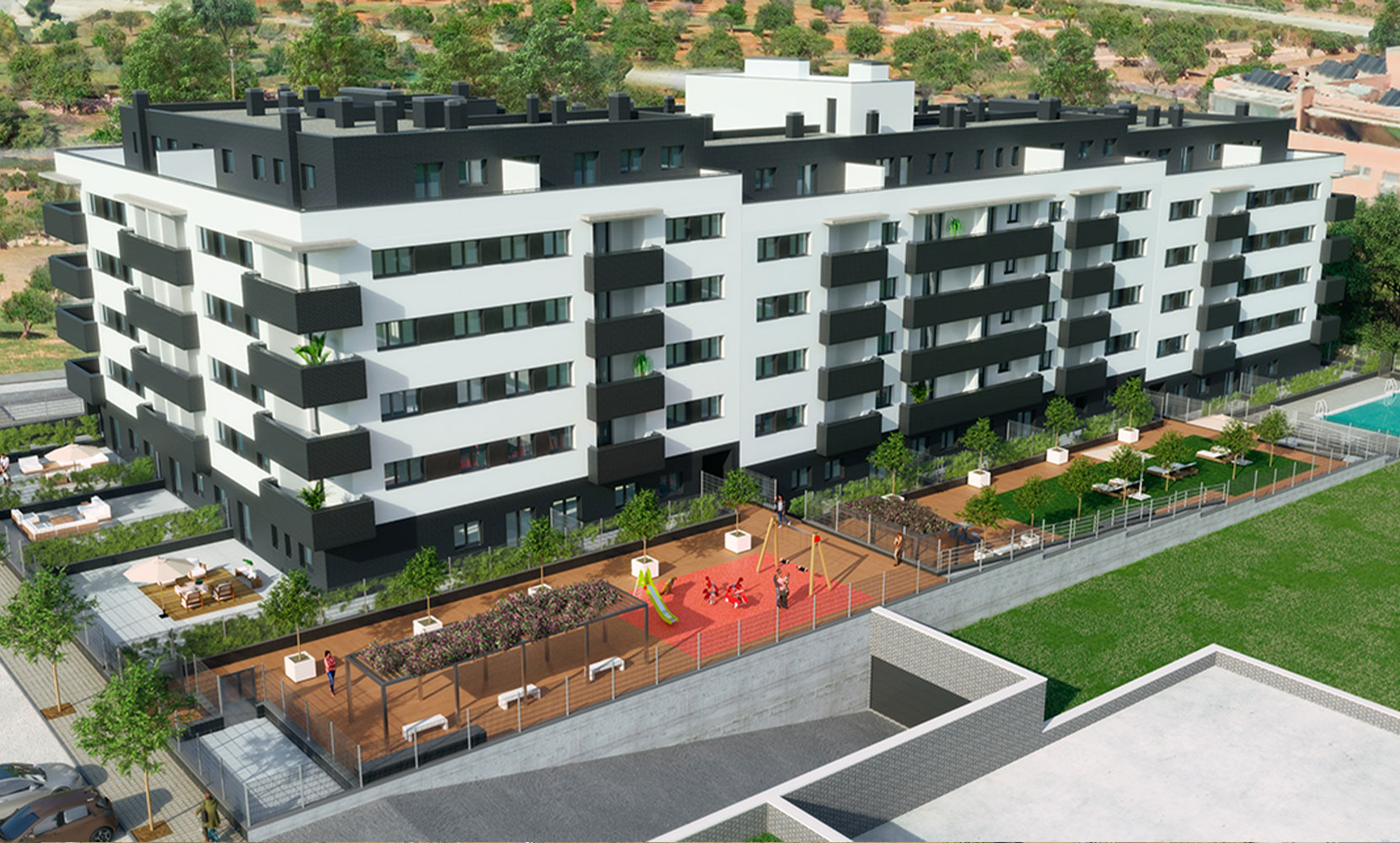 Construccion de complejo residencial de 109 viviendas de VPT de 2 y 3 dormitorios, garajes, trasteros y piscina.