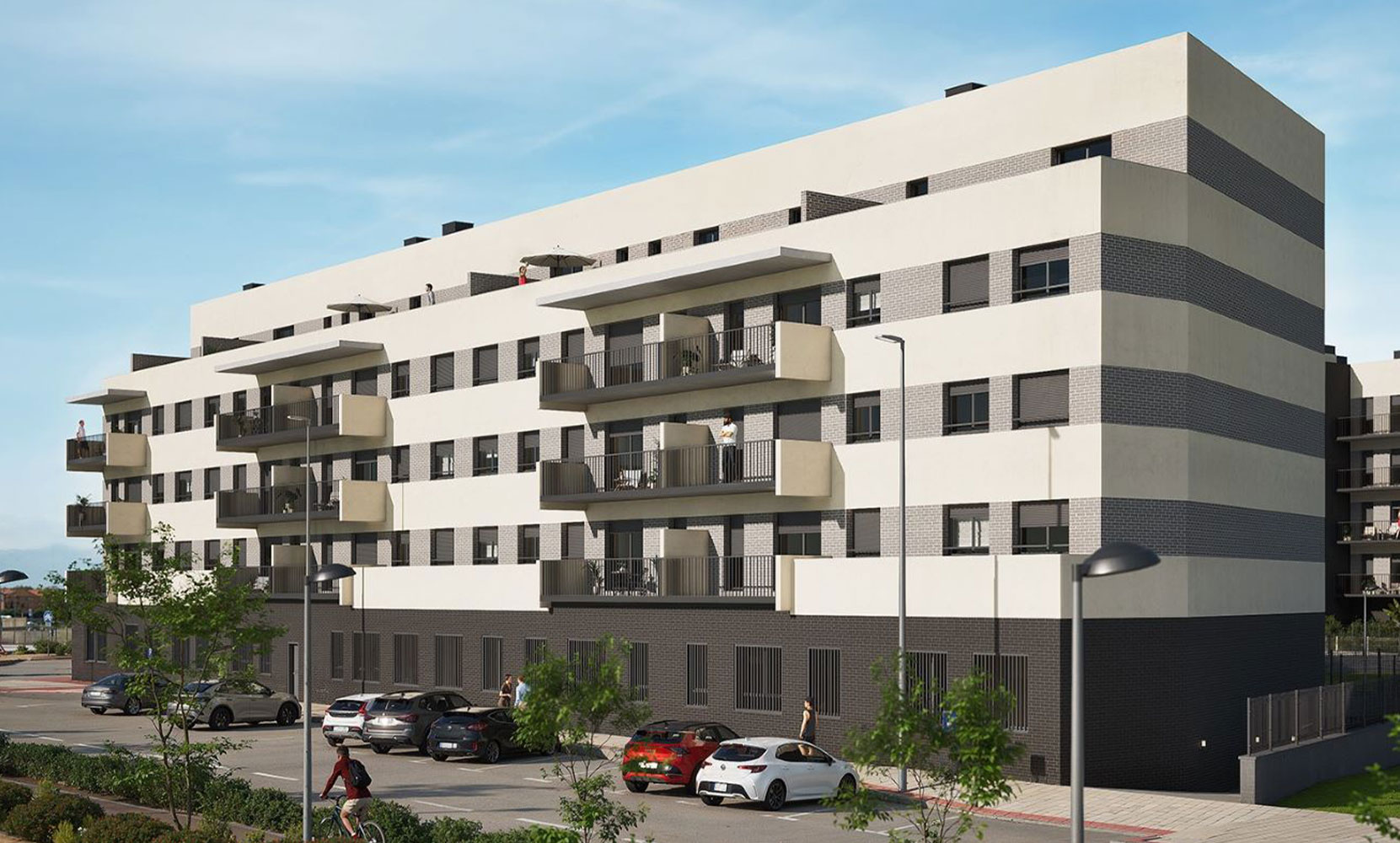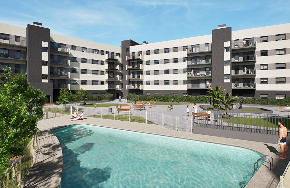 Construcción de complejo residencial de 131 viviendas 1, 2, 3 y 4 dormitorios, con terraza, garaje y trasteros. Zonas comunes con piscina de adultos e infantil y solárium.